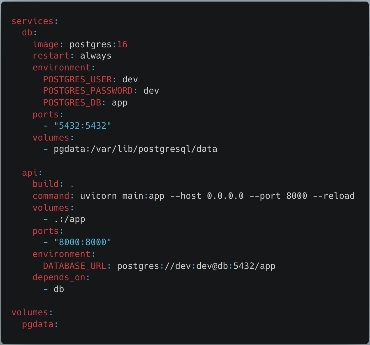 You clone your repo on a new laptop or spin up a new dev box, run flask run or uvicorn main:app --reload, and boom — connection refused on localhost:5432.